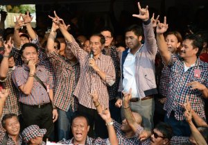 Joko Widodo viert de overwinning
