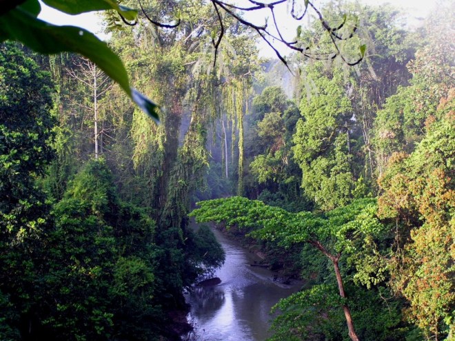 Een riviertje door het regenwoud. Dit is in de buurt van Way Canguk, een onderzoekscentrum voor dieren en planten van de Indonesische overheid, in de provincie Lampung.
