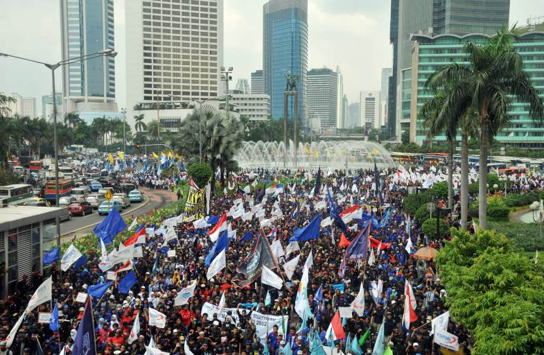 Er wordt verwacht dat honderdduizenden mensen op 1 mei, de Dag van de Arbeid, de straat op zullen gaan in Jakarta en omliggende steden. Zij zullen demonstreren voor hogere lonen en verandering van het huidige arbeidscontractsysteem. Ook zal de geplande verhoging van de benzineprijs onderwerp van protest zijn.