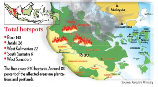 Een eerste onderzoek zou hebben uitgewezen dat de bron van de bosbranden ligt bij acht plantages die eigendom zijn van Maleisische investeerders in de provincie Riau. Minister Balthasar Kambuaya zei: “Het ministerie zoekt nog naar meer bewijs en bevestiging in het veld. De branden zijn zeker binnen hun concessiegebieden. Ik zal meteen mijn Maleisische collega ontmoeten om hem te informeren over de bevindingen, en om manieren te vinden voor het oplossen van de huidige situatie en het voorkomen van zulke problemen in de toekomst.”