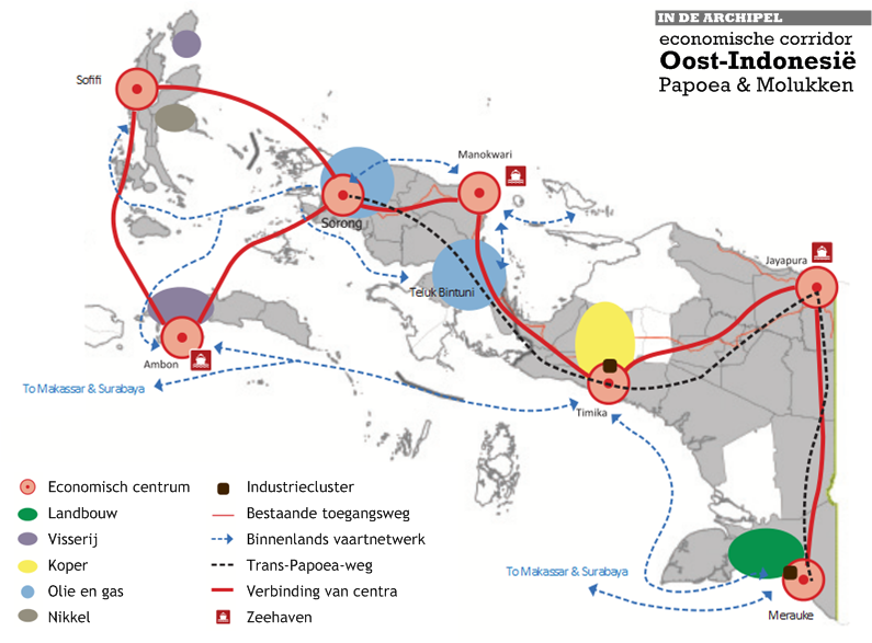 De ‘economische corridor’ Papoea-Molukken is nog moeilijk voor te stellen als een werkelijke economische corridor. Er is nauwelijks een relatie tussen de verschillende economische centra, en de verbindingen onderling zijn slecht of onbestaand. De vier provincies zullen zich elk op een andere sector richten, en ook daarom is de samenhang ver te zoeken.