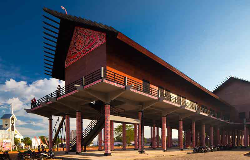 [5] Traditioneel Dajak-langhuis in Pontianak: Borneochannel.com.