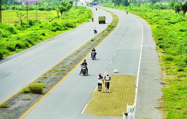 Een oud stuk snelweg bij Porong, dat door de moddervulkaan niet meer als zodanig gebruikt wordt.