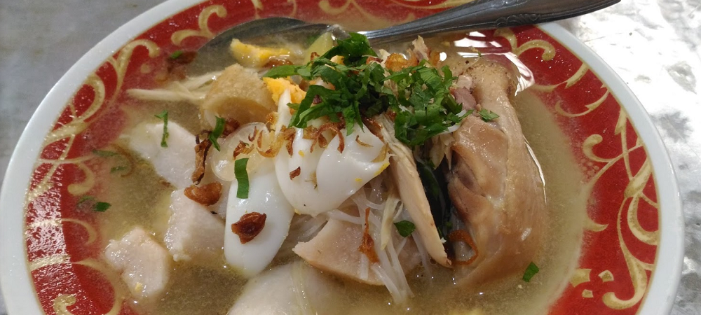 Soto Banjar bij de warung H. Anang Ayam Bapukah in Banjarmasin.