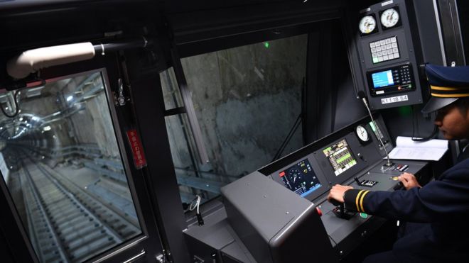 Metrobestuurder tijdens de eerste openbare testdag op 12 maart 2019 (foto: Antara/Sigid Kurniawan).