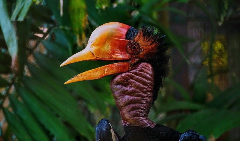 De helmneushoornvogel (Rhinoplax vigil) is een van de ongeveer 60 soorten neushoornvogels, en een van de drie die ernstig bedreigd wordt. Net als alle andere neushoornvogels heeft de helneushoornvogel een grote gebogen snavel. Waar bij de meeste andere soorten een soort holle ‘hoorn’ bovenop de snavel zit, heeft deze soort een hoorn (of ‘helm’) van massief bot. Dit draagt ook bij aan de ernstig bedreigde status, want stropers jagen op de vogels om dit bot, dat lijkt op ivoor, te kunnen verhandelen. De helmneushoornvogel komt voor in de laaglandbossen van Sumatra, Kalimantan en ook Maleisië en het zuidelijke deel van Thailand. Er wordt gedacht dat er nu nog vrij veel vogels van de soort zijn, maar door de toenemende ontbossing en jacht is de verwachting dat de helmneushoornvogel in steeds meer delen van dit gebied uitsterft. Verschillende andere soorten neushoornvogels komen ook in Indonesië voor, zoals de Maleise jaarvogel (bedreigd), dubbelhoornige neushoornvogel, Soemba-jaarvogel, Temmincks neushoornvogel, zwarte neushoornvogel (allemaal kwetsbaar), bonte neushoornvogel en Papoea-jaarvogel (beide niet bedreigd).